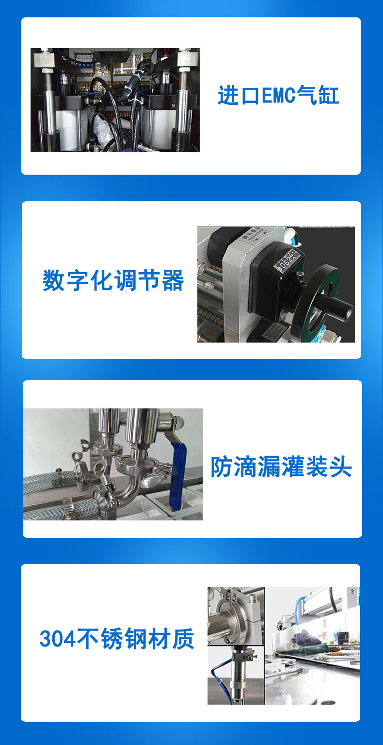 本機(jī)是針對乳品、煉乳、固體飲料等液體/膏體包裝精心設(shè)計(jì)的1-5L任意可調(diào)的新一代包裝設(shè)備。采用微電腦PLC自動控制、人機(jī)界面、全封閉、下潛式灌裝。計(jì)量精度高,灌裝范圍大,結(jié)構(gòu)緊湊,運(yùn)行平穩(wěn),適合于各種規(guī)則形狀的容器灌裝,液缸及其管道拆卸、清洗,方便快捷。